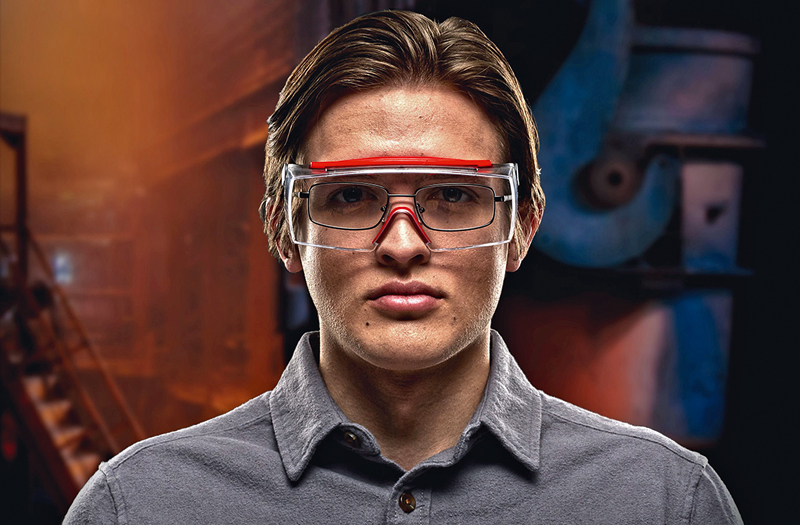 Die Überbrille verbindet die zuverlässige Schutzfunktion für verschiedenste Anwendungsbereiche mit einer sehr guten Passform und einem sicheren Sitz über der Korrekturbrille. Dazu tragen die winkelverstellbare Scheibe, die flachen Bügel sowie der weiche Nasensteg bei. Mit der patentierten Bügeldruckverteilungstechnologie passt sich die neue Serie verschiedensten Kopfformen und -größen sowie der individuellen Brillenposition an. Dies sorgt für einen sicheren Sitz selbst bei ruckartigen Bewegungen oder Überkopfarbeiten.