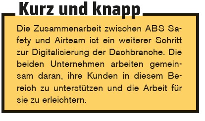 »Wir freuen uns sehr über die Zusammenarbeit mit Airteam und die Möglichkeit, unseren Kunden eine noch umfassendere Lösung anbieten zu können«, so Stefan Beckers, Geschäftsführer von ABS Safety. »Mit dieser Partnerschaft bieten wir unseren Kunden eine einfache und effektive Lösung, ihre Arbeitsprozesse zu optimieren und die Digitalisierung ihrer Dachplanungen voranzutreiben.«