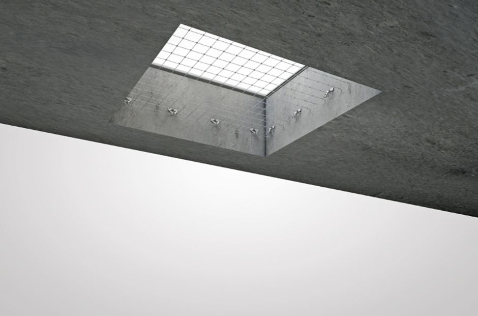 »ABS DomeFix« bietet laut Hersteller zuverlässigen Schutz, denn das 3 mm starke Edelstahlseil des Fangnetzes wird fest verankert. Die erforderlichen Montageklemmen und das zum Untergrund passende Befestigungsmaterial gehören zum Lieferumfang der in Deutschland entwickelten Lichtkuppelsicherung. Das »DomeFix« wird nach Kundenwunsch in der passenden Größe geliefert.