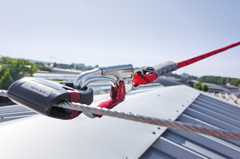 Der »Lock Falz H« kann laut Hersteller alternativ mit Kurvenelementen und Zwischenstützen für Seilsicherungssysteme des Typs »Lock SYS« ausgerüstet werden. Auf diese Weise lassen sich nach eigenen Angaben längere Verkehrswege auf dem Falzdach unterbrechungsfrei sichern – Dacharbeiter befestigen ihre persönliche Schutzausrüstung gegen Absturz (PSAgA) am Gleiter des Systems, der ihnen während des Einsatzes entlang eines parallel zu den Absturzkanten gespannten Edelstahlseils folgt. Werden für die Montage ausschließlich vom DIBt zugelassene Systemkomponenten verwendet und vorschriftsgemäß verbaut, gilt die bauaufsichtliche Zulassung für das gesamte System.