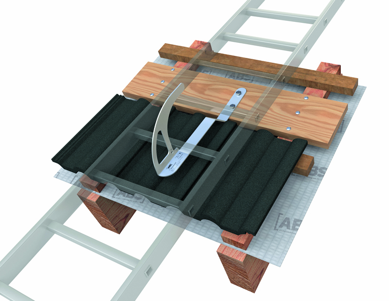 Eine weitere Neuerung des Unternehmens aus Kevelaer ist das Befestigungsset »ABS-Lock DH-Flex«, mit dem der Sicherheitsdachhaken »DH04-OG« frei an den Dachziegeln ausgerichtet wird. Das Set erlaubt, ein Brett zwischen die vorhandenen Dachbalken zu montieren, durch das der Dachhaken gekontert wird. Dabei wählt der Dachdecker eine Position, die es erlaubt, den Haken genau in die Wölbung der Dachziegel zu setzen. Das Set enthält alle erforderlichen Befestigungsmittel, das zusätzlich benötigte Holzbrett wird vor Ort auf die korrekte Länge gebracht.