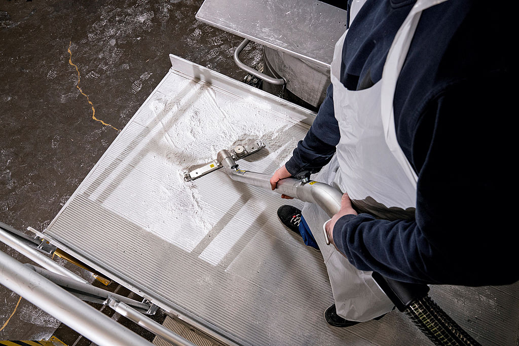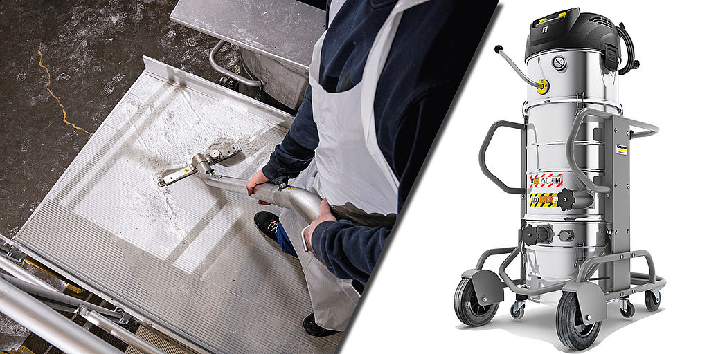 Um die feinen Partikel aus dem Arbeitsumfeld zu entfernen und die Gefahr einer Explosion zu verhindern, muss eine Inertisierung erfolgen. Bei dem Verfahren zum Explosionsschutz wird durch Zugabe von Wasser oder Öl das Risiko einer chemischen Reaktion verhindert. Der neue Industriesauger »IVM 60/24-2 M ACD WS« von Kärcher zielt genau auf diese Anwendung ab.
