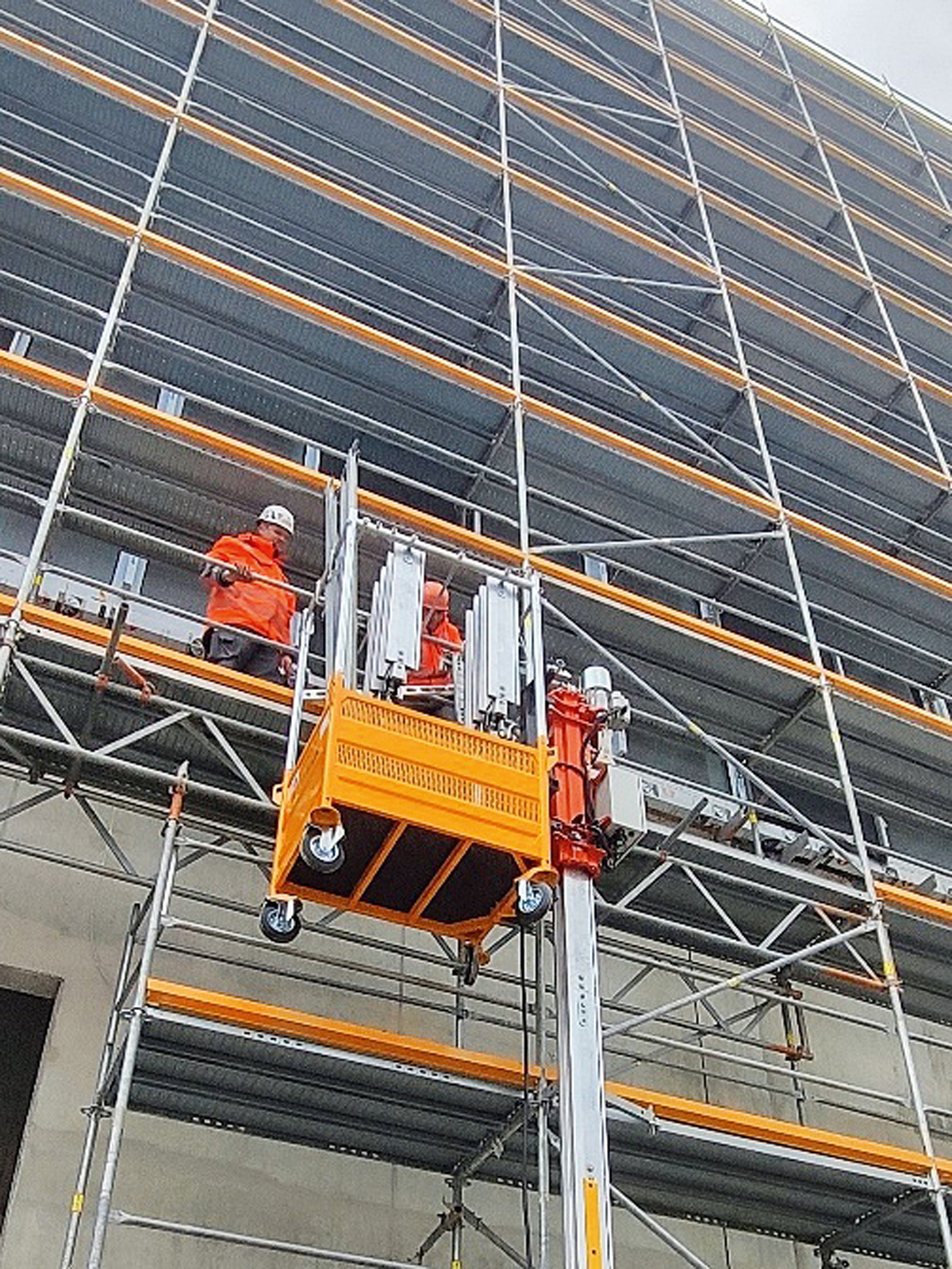 Mit einer Reihe von Funktionen ermöglicht das Gerüsttransportsystem unter anderem eine produktivere Auf- und Abbauzeit und eine bessere Ergonomie. Auch das horizontale Arbeiten am Boden werde unterstützt, sodass die Benutzerfreundlichkeit und die Effizienz weiter gesteigert werden können. Dabei habe man das »Alimak STS 300« so konzipiert, dass es optimal zum »Peri Up«-Gerüstbaukasten passt: Die Montage ist so aufeinander abgestimmt, dass sich die Gerüstbauer sowohl beim Auf- und Abbau eines Gerüstes als auch bei der Montage und Demontage des »Alimak STS 300« in einer gesicherten Position befinden.