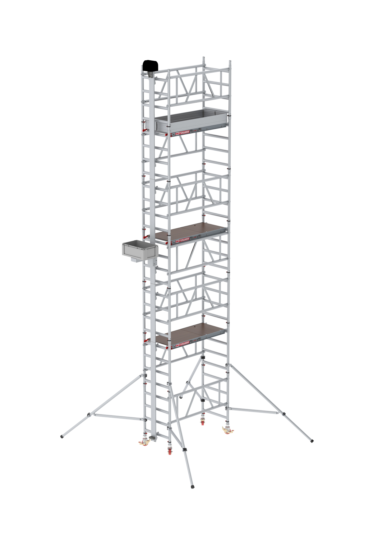 Mit dem »Shuttle-Lift«-System präsentiert Altrex eine optionale Zusatzausrüstung für sein Rollgerüst: Der Lift soll in erster Linie den Materialtranport nach oben leichter und effizienter gestalten. So können nach Angaben des Herstellers bis zu 60 kg Material mithilfe einer Winde und eines Akkuschraubers auf die Arbeitsplattform befördert werden.