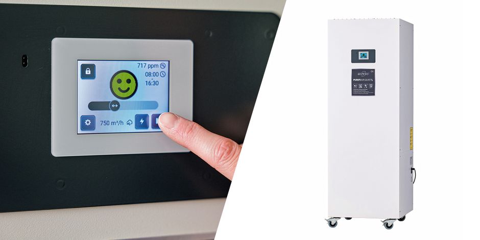 Zahlreiche Features sollen den beiden Luftfiltersystemen zudem eine einfache und schnelle Reinigung der Raumluft ermöglichen. So vefügt die Serie beispielsweise über einen CO2-Sensor, der auf einem Touchdisplay in mehreren Stufen in verschiedenen Farben die CO2-Konzentration in der Luft anzeigt: Das Spektrum reicht von Grün mit geringer Belastung bis hin zu Rot für eine starke Belastung. Mittels Schaltuhr lässt sich außerdem für jeden Wochentag eine Start- und Abschaltzeit festlegen. Ein Timer ermöglicht die automatische Abschaltung des Geräts. Durch die fahrbare Ausführung können die Modelle darüber hinaus flexibel verschoben werden. Beide »Purifiair.Quiet«-Modelle kombinieren einen ePM1 70 Prozent Vorfilter gemäß DIN EN ISO 16890 und einen HEPA-Filter H14 gemäß europäischer Norm EN 1822.