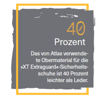 Das Obermaterial nimmt auch nach längerer Nutzung oder bei Verlust der wasserabweisenden Imprägnierung praktisch keine Feuchtigkeit von außen auf. Im Vergleich zu Sicherheitsschuhen mit konventionellen Obermaterialien verzeichnet die »XT Extraguard«-Serie eine wesentlich schnellere Trocknungszeit.