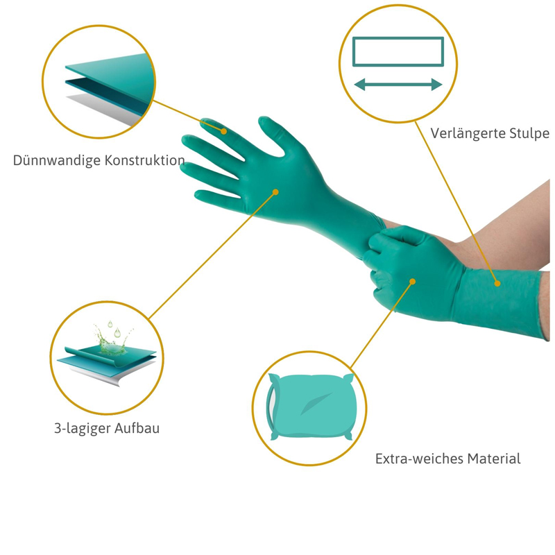 Neben dem Schutz des Trägers spielen Tragegefühl, Bewegungsfreiheit und Tastsinn der Hände weitere wichtige Rollen. Die dünnwandige Konstruktion des Ansell MicroFlex 93-260 erlaubt dem Träger eine größere Tastsensibilität und Fingerbeweglichkeit. Das extra weiche Material sowie die anatomische Passform bieten zudem ein herausragendes Tragegefühl und Flexibilität. Ein niedriger AQL-Wert (0,65) und eine verlängerte Stulpe runden diesen Handschuh ab.