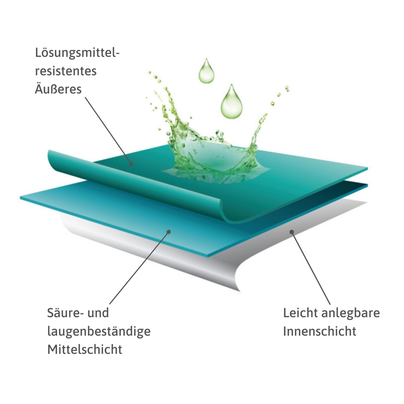 Das Besondere an Ansell's MicroFlex 93-260 ist seine 3-Lagen-Konstruktion. Alle 3 Lagen besitzen besondere Eigenschaften, die im Bereich der Einmal-Chemikalienschutzhandschuhe in dieser Kombination selten zu finden sind.