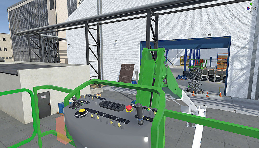 Die »VR-Hubarbeitsbühnen-Anwendung« soll eine Vielzahl von Situationen, die im Arbeitsalltag auftreten können, realitätsnah abbilden, indem eine realitätsgetreue Hubarbeitsbühne von den Schulungsteilnehmenden intuitiv bedient werden kann.