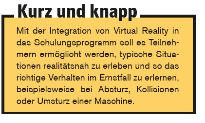 Praktisch ist auch, dass die VR-Situationen von verschiedenen Teilnehmenden gleichzeitig erlebt werden können. Ausgebildete Trainer begleiten das Geschehen aktiv. Die Bedienoberfläche ist in den Schulungskontext integrierbar, neue Arbeitsbühnenmodelle können jederzeit programmiert werden. Das Produkt wurde darüber hinaus beim jährlich ausgelobten Förderpreis des Verbandes der Baubranche, Umwelt- und Maschinentechnik (VDBUM) in diesem Jahr mit dem 3. Platz ausgezeichnet.