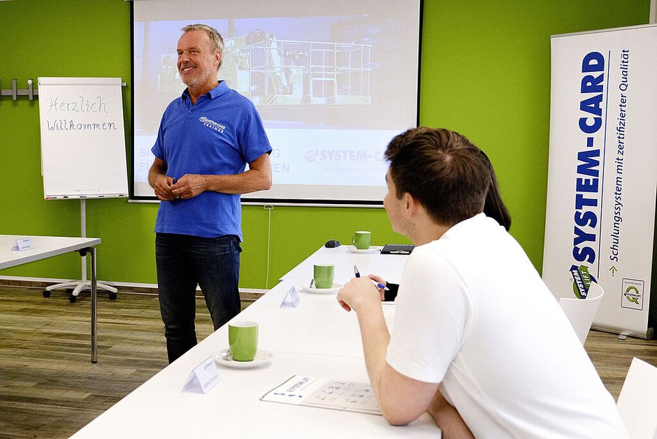 Das Schulungsprogramm der System-Card erstreckt sich über die Bauformen Hubarbeitsbühnen, Flurförderfahrzeuge und Telestapler, Kran, Erdbaumaschinen, Anschläger, Einweiser sowie Anwender PSAgA. Die verschiedenen Schulungen werden durch mehr als 110 ausgebildete Trainerinnen und Trainer an über 80 Schulungszentren der System Lift-Partner im deutschsprachigen Raum durchgeführt. Jedes Jahr kürt System Lift dann das Schulungszentrum, das die höchste Anzahl an Schulungsteilnehmenden verbuchen konnte, zum »Schulungszentrum des Jahres«. Für 2023 führt die Arbeitsbühnen Hoffmann GmbH aus Baden-Württemberg diese Rangliste mit insgesamt 2 604 Teilnehmenden an. Lindig Fördertechnik belegt Platz zwei und Schlamann Autokrane Platz drei.