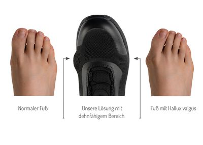 Entlastung soll ebenfalls das geringe Gewicht bringen: »Stella« bringt in Größe 42 lediglich 425 g auf die Waage. Außerdem wurde der Schuh auf einem Damenleisten gefertigt. »Der dehnfähige Hallux-Strickschaft hilft außerdem, Schmerzen zu vermeiden oder deutlich zu vermindern«, ergänzt Grusa.