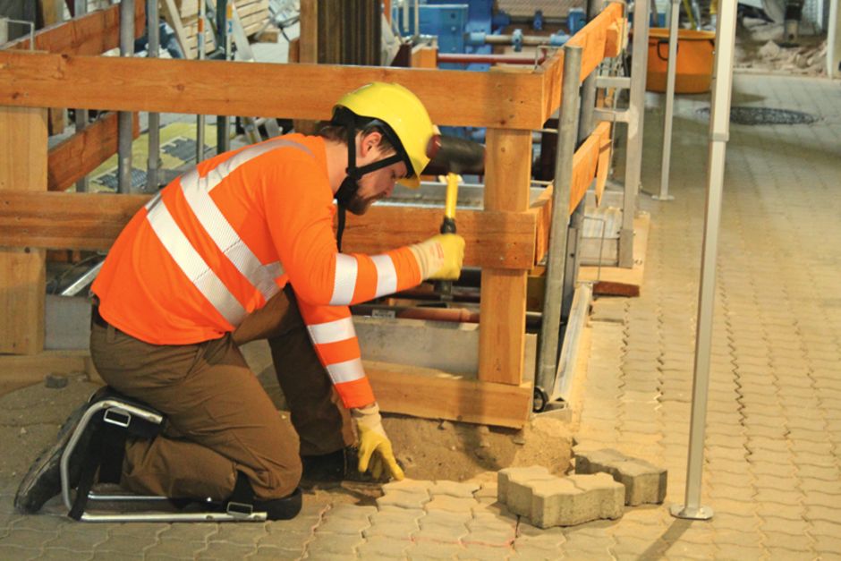 »Dabei gibt es praktische Maßnahmen, mit denen sich Beanspruchungen verringern lassen«, sagt Bernhard Arenz, Präventionsleiter der BG Bau. Eine ergonomische Arbeitshöhe ist ein wichtiger Faktor. Wenn etwa Vormontagen in einer guten Haltung vorgenommen werden, sind beispielsweise Installateure weniger belastet. Auch sollten Fliesenschneider zum Beispiel auf einem Tisch statt auf dem Boden stehen. Sind Tätigkeiten im Knien und Hocken nicht zu vermeiden, kann durch regelmäßige Abwechslung für Entlastung gesorgt werden.