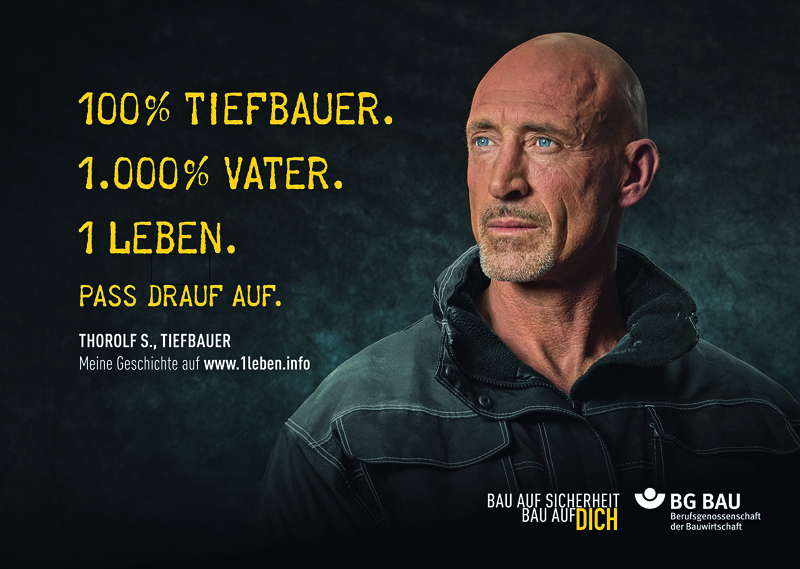 « So lautet eine breit angelegte Kampagne der Berufsgenossenschaft der Bauwirtschaft, die die Sensibilisierung der Beschäftigten, aber auch der Unternehmen für das Thema Sicherheit und Gesundheit am Arbeitsplatz, zum Ziel hat. Dazu berichten Betroffene von eigenen Erlebnissen und den Folgen. Die Kampagne soll unter anderem mit Motiven an Bauzäunen und Postern auf das Thema aufmerksam machen.