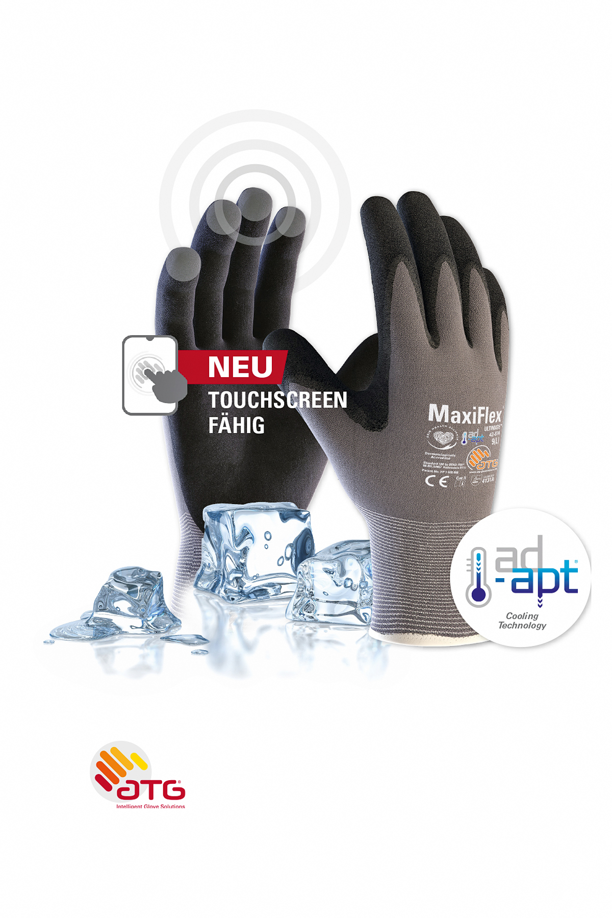 Mit der »AD-APT Cooling Technology« hat ATG die Montagehandschuhe »MaxiFlex Ultimate« und »MaxiFlex Endurance« ausgestattet. Dabei werden Mikrokapseln in das Handschuhfutter integriert, die durch Bewegung sowie Wärme aktiviert werden und natürliche, kühlende Substanzen freigeben sollen, um die Hände trocken und kühl zu halten. Dabei werde die natürliche Fähigkeit des Körpers zur Thermoregulation nicht beeinträchtigt, sondern gefördert.