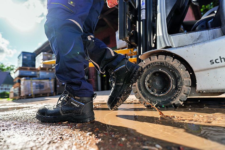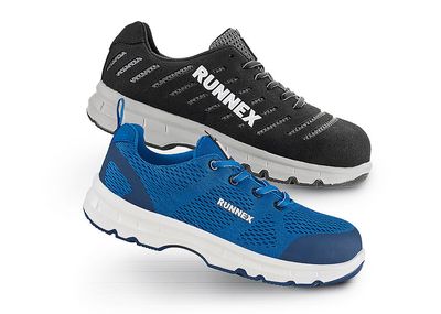 »Runnex«-Sicherheitsschuhe eignen sich optimal für eine Vielzahl von beruflichen Anwendungen, ob auf der Baustelle, im Lager oder in anderen anspruchsvollen Umgebungen. Die rutschfeste Sohle sorgt für sicheren Halt auf glatten Oberflächen, während die robuste Bauweise auch anspruchsvollen Arbeitsbedingungen standhält.