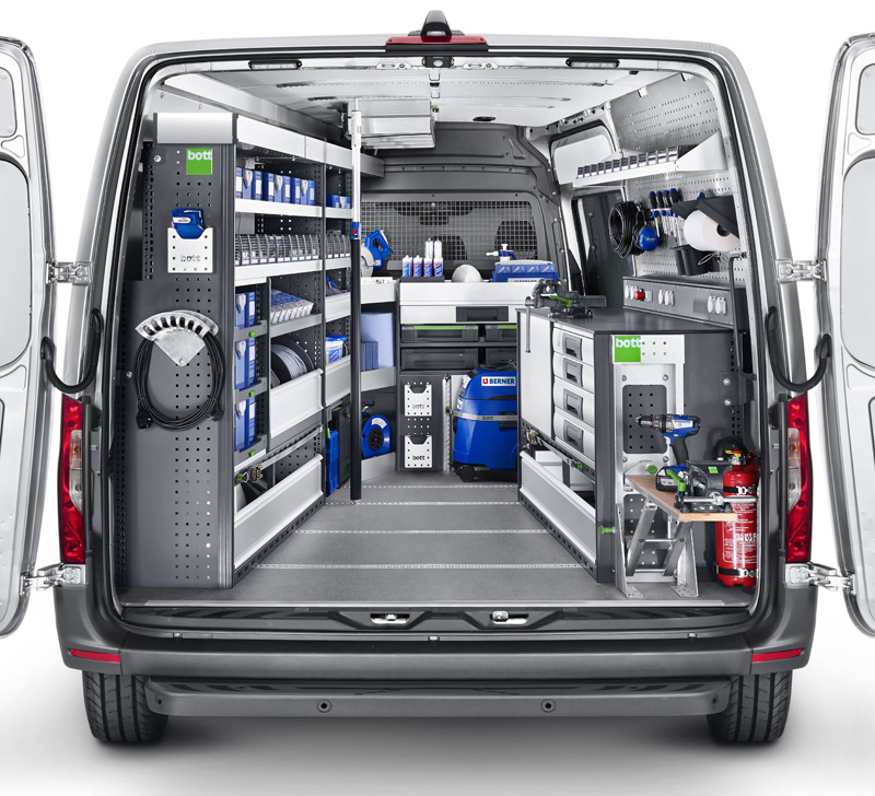 Die Kommissionierung und die logistische Vernetzung verschiedener Arbeitsbereiche zeigt Bott an weiteren Exponaten. Hier werden exemplarisch am zentralen Lager Bereitstellungswagen kommissioniert und anschließend die Arbeitsplätze entlang der Logistikkette mit dem Material versorgt – sowohl stationäre »Avero«-Arbeitsplätze, als auch mobile Arbeitsplätze im Transporter mit der »Vario«-Fahrzeugeinrichtung. Die durch das »ELAM«-System von Armbruster Engineering gesteuerten »Pick-to-Light«-Anzeigen sorgen dafür, dass das Material dort abgelegt wird, wo es gebraucht wird. Laut Hersteller sorgt das für schnelle und prozesssichere Arbeitsabläufe.