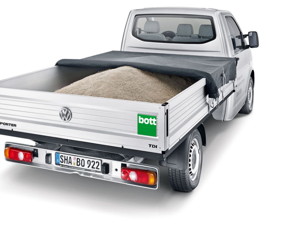 Loses Transportgut auf der offenen Ladefläche, wie beispielsweise feiner Sand oder Grünabfälle, ist bei starkem Fahrtwind oder heftigen Bremsmanövern nicht ohne Weiteres auf der Pritsche festzuhalten. Die umherfliegende Ladung kann für andere Verkehrsteilnehmer leicht zur Gefahr werden. bott bietet hierfür eine praktische Lösung an: Das Ladungssicherungsgewebe. Es hält alle noch so leichten und kleinen Dinge auf der Ladefläche fest. Das bott Ladungssicherungsgewebe wurde in Anlehnung an die VDI Norm 2700 geprüft.