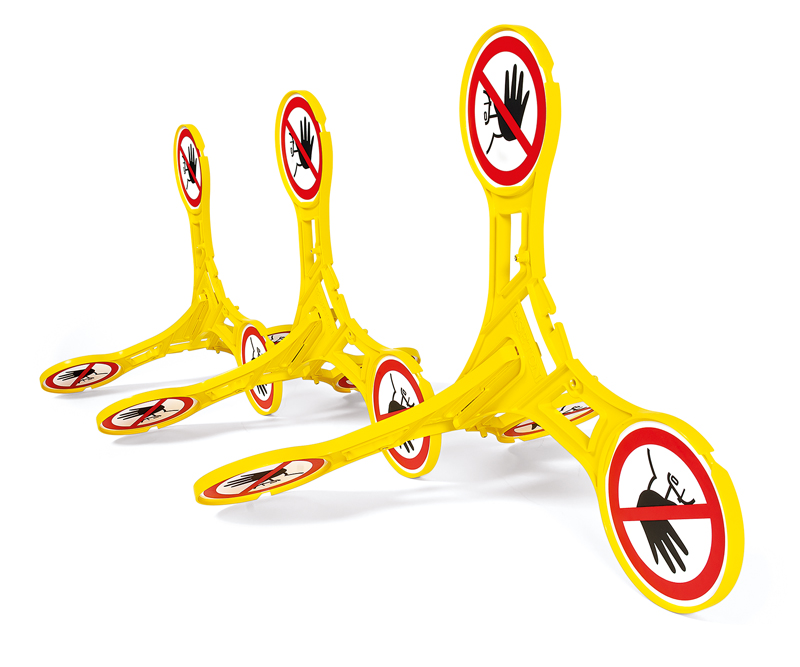 Der »Seton« Warnaufsteller »360« mit Sicherheitssymbolen nach EN ISO 7010 ermöglicht die effektive Kennzeichnung von vorübergehenden Gefahrenbereichen. Mit diesem innovativen 3D-Warnaufsteller sollen die Sicherheitshinweise auf der Baustelle zu jeder Zeit von allen Seiten gut sichtbar sein. Selbst wenn er versehentlich umgestoßen wird, fällt der Sicherheitsaufsteller durch sein besonderes Design wieder in eine aufrechte Position. Der Warneffekt bleibt immer erhalten. Der Warnaufsteller besteht aus zwei Teilen. Diese werden einfach ineinandergesteckt und der Sicherheitsaufsteller ist einsatzbereit. Für Transport und Lagerung können die zwei Teile flach übereinander gelegt und über eine Steckverbindung sicher verbunden werden. Durch sein leichtes Gewicht und den praktischen Tragegriff ist der Warnschild-Aufsteller einfach zu transportieren und flexibel einsetzbar in verschiedenen Unternehmensbereichen. J