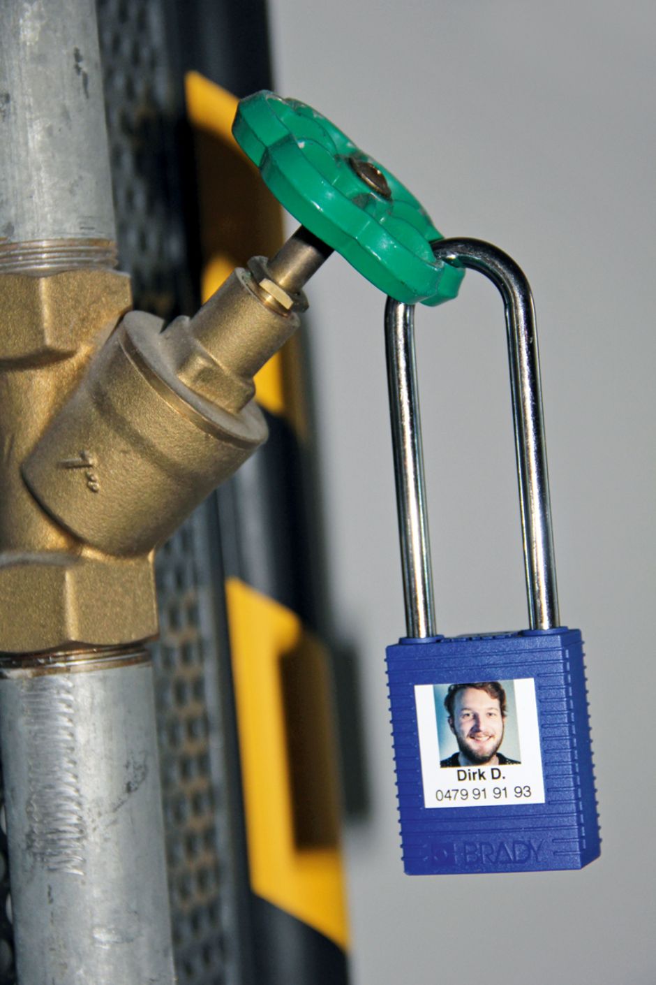 Die Personalisierungselemente können zu Lockout/Tagout-Zwecken in Vollfarbe und hoher Auflösung direkt auf den »SafeKey«-Nylonvorhängeschlössern von Brady gedruckt werden. Der zuverlässige Druck ist laut Brady sowohl im Innen- als auch im Außenbereich beständig gegen Abrieb, Chemikalien und UV-Strahlung. Für noch mehr Zuverlässigkeit können die Vorhängeschlösser mit einer Gravur versehen werden, auf Kosten von Farbe und komplexen Formen. Ein drittes Standardverfahren zum Personalisieren von Vorhängeschlössern ist die Möglichkeit, die Brady-Vorhängeschlösser mit selbstklebenden Etiketten zu versehen, auf denen grundlegende Informationen handschriftlich vermerkt oder gedruckt werden können.