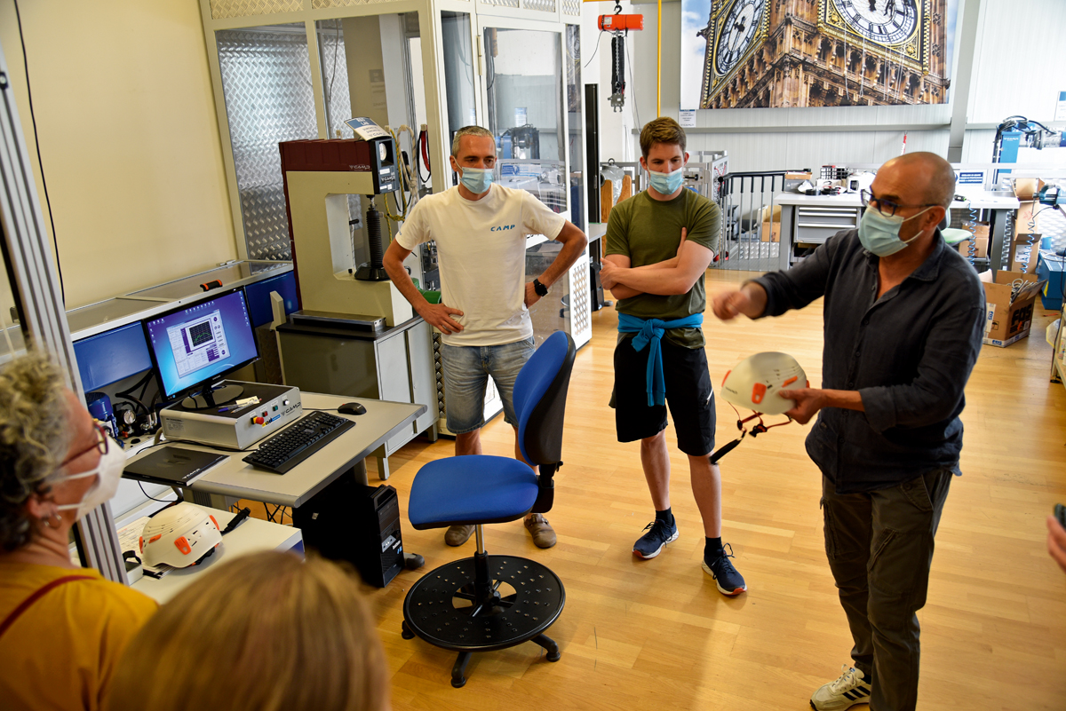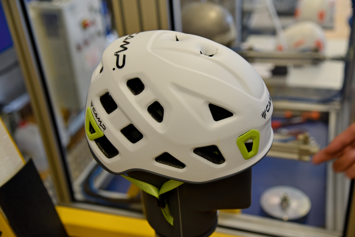 Auf seine Traditionen zu setzen bringt bei C.A.M.P. einen weiteren wichtigen Aspekt mit sich: So modern die Design- und Entwicklerschmiede am Standort in Premana auch ist, sie fußt dennoch auf der Prämisse »von Profis für Profis« zu denken. Abseits von CAD-Zeichnungen, die zu ersten Skizzen und Formen führen, wendet C.A.M.P. auffallend viel Zeit, aber auch Räumlichkeiten dafür auf, neue Produkte zu testen. Das geschieht einerseits inmitten der hauseigenen Labor- und Testbereiche: Hier finden Schlagtests auf Helme, Reißfestigkeitsprüfungen von Schlingen und Gurten sowie Bruchfestigkeitstest bei Karabinern statt. Andererseits nimmt C.A.M.P. das »Testen« wörtlich, um »selbst in die Berge zu gehen«. Viele Mitarbeiter sind Sportkletterer und verbringen ihr Leben inmitten von Bergmassiv, Felssporn und Gipfel. Vom Prototypen bis zur produktionsreifen Lösung testen die Mitarbeiter alles unter realen Bedingungen. »Als Hersteller von professioneller PSAgA gibt es keinen Toleranzbereich für halbe Sachen: Unsere Lösungen müssen vor Gefahren schützen, müssen zuverlässig funktionieren – und das in Bereichen, die für den Anwender lebensgefährlich sind«, erklärte der für den deutschen Markt zuständige Country Manager, Christian Bickel, der ebenfalls jede freie Minute in den Bergen verbringt und die hauseigenen Produkte unter realen Bedingungen auf Herz und Nieren prüft.