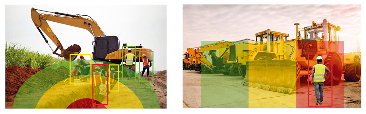 Jens Bergemann: Als ich das erste Mal eine angsteinflößende Grafik sah, in der unzählige Tote Winkel beim Lkw eingezeichnet waren, konnte ich es nicht fassen, dass solche Fahrzeuge halbblind durch den Straßenverkehr fahren müssen. Die Einführung des Abbiegeassistenten läutete ein neues Bewusstsein und Verantwortungsgefühl in allen Branchen ein, welches jetzt auch im Bauwesen Einzug hält. Ich bin fest davon überzeugt, dass hier die Gefahr der Verletzung von Menschen um ein Vielfaches höher ist. Aus diesem Grund konzentrieren wir uns seit einigen Jahren auf Kameratechnik, die mittels Künstlicher Intelligenz Personen zu nahezu 100 Prozent zuverlässig erkennen und den Maschinenführer frühzeitig warnen kann. Wahlweise kann sie auch vor Fahrzeugen warnen, dadurch ist eine unnötige Alarmierung vor anderen Objektklassen ausgeschlossen. Diese Kameras besitzen mehrere Alarm-Ein- und -ausgänge, womit etwa bewegliche Hydraulikaggregate sofort automatisch gestoppt werden können, bevor ein Unfall verursacht wird. Monitore schalten automatisch auf das Bild der Kamera um, welche eine Person detektiert. Werden mehrere gleichzeitig erkannt, erfolgt eine Splitscreen-Darstellung. Die Größe der gewünschten Überwachungsbereiche kann den individuellen Bedürfnissen entsprechend eingestellt werden. Bis zu drei unterschiedliche Warnzonen können pro Kamera gewählt werden. Da die Nachtsicht fast tageshell ist, ist die Erkennungsqualität auf höchstem Niveau. Wenn Schnee und Schlamm vorhanden ist oder vor allen Objekten gewarnt werden soll, kommen Radarsensoren zum Einsatz, deren Warnauslösungen als Grafik das Kamerabild überlagern.