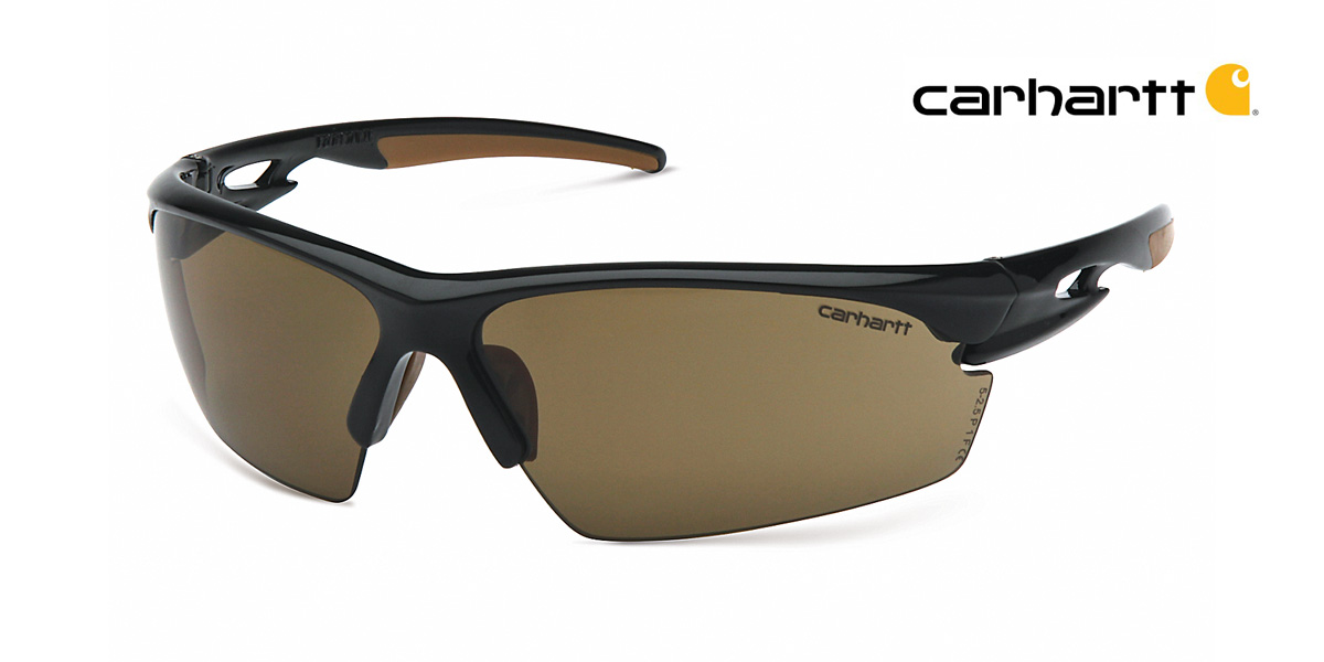 Für Handwerker und Bauarbeiter bietet Carhartt mit der »Full Frame Vented Temple Safety Glasses« durch die Rundumabdeckung bestmöglichen Schutz. Durch flexible Gummi-Enden und -Nasenstücke kann die Brille zudem individuell angepasst werden. Wer leichten Schutz für heiße Tage sucht, wird mit der »Frameless Wraparound Safety Glasses« fündig. Diese Sicherheitsbrille verfügt über belüftete Bügel, während die beschlagfreien Gläser eine klare Sicht ermöglichen. Gläser und Rahmen bestehen bei beiden Modellen aus Polycarbonat.