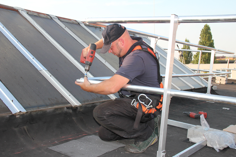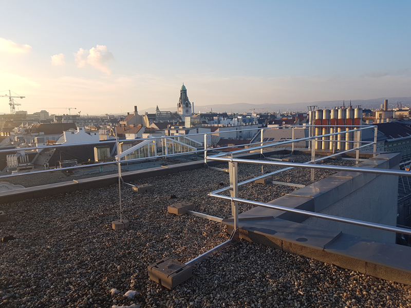 Das bewährte GUARD Seitenschutzsystem ist ein selbsttragendes Geländersystem für die einfache und kostengünstige Nachrüstung von Flachdächern. Herkömmliche Sicherheitseinrichtungen werden fest auf der darunterliegenden Dachfläche montiert. Dies ist nicht nur kostenintensiv, sondern mit Durchdringungen der Dachabdichtung verbunden. Werden hierdurch Leckagen verursacht, kann dies zu gewährleistungsrechtlichen Problemen führen. Das GUARD System wird durchdringungsfrei montiert, einfach und schnell durch vormontierte Pfosten. Es ist bis zur letzten Schraube durchdacht, wartungsärmer als Sekuranten und auf allen gängigen Untergründen im Flachdach aufstellbar. Außerdem ist das Betreten der Dachflächen zu Wartungszwecken auch Personen ohne PSAgA Schulung gestattet. Neben der Sicherung von Dachabsturzkanten ist GUARD zur Umwehrung von Dachzugängen, Lichtkuppeln und Oberlichtern geeignet sowie für die seitliche Begrenzung von Wartungs- und Rettungswegen.