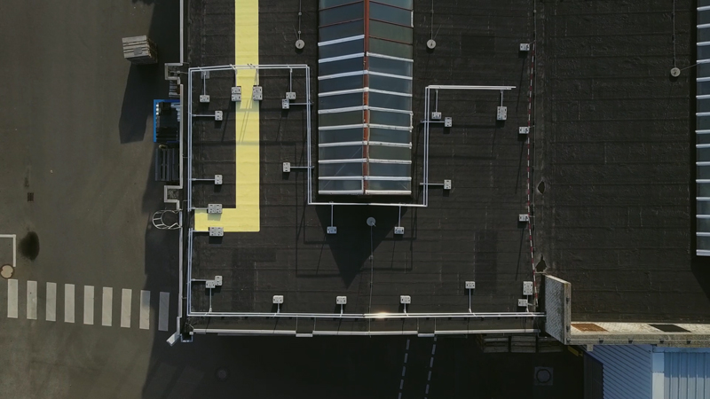 Eine sinnvolle Ergänzung zur Absturzsicherung bildet die optische Abgrenzung eines sicheren Inspektions- und Wartungsweges auf dem Flachdach. Der WALKWAY ist eine rutschhemmende Sicherheitsoberlage auf Basis von EPDM. Er ist mit einem zusätzlichen Festigkeitsträger für Perforationsschutz und Dimensionsstabilisierung ausgestattet und mit einer selbstklebenden Butylschicht versehen. Hierdurch kann er schnell verlegt und befestigt werden. Die geringe Aufbauhöhe von 1,6 mm beeinträchtigt den Wasserablauf fast nicht. Mit einem Flächengewicht von nur 2 kg/m² kann der WALKWAY auch problemlos bei Sanierungen eingesetzt werden. Er wurde für die Verlegung auf RESITRIX® und HERTALAN® Abdichtungen entwickelt, kann aber nach Rücksprache mit der CARLISLE® Anwendungstechnik auch auf andere Untergründe verlegt werden.