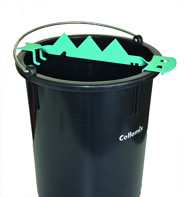 Als weiteres praktisches Zubehör für den Einsatz auf der Baustelle hat Collomix die neue Eimerhalterung »Mix.Grip« entwickelt. Diese Vorrichtung verhindert ein Durchdrehen des Eimers während des Mischens. Besonders bei Mischarbeiten mit einem Rührstab kommt es vor, dass der Eimer die Bewegung des Mischguts annimmt und bei mangelnder Bodenhaftung in Bewegung gerät. Häufig klemmt sich der Anwender dann den Eimer zwischen die Beine. Dies führt laut Hersteller nicht nur zu einer ungesunden Zwangshaltung, sondern beeinträchtigt auch die Standsicherheit während der Mischarbeiten. Mit der Eimerhalterung hat Collomix hier nun Abhilfe geschaffen. w
