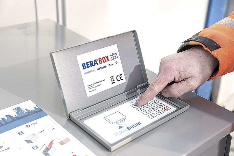 »Bera Box 2Go« und »Obticase« sind quasi Paket-Butler. Rund um die Uhr werden die Bestellungen der Kunden in einer Sicherheitsbox durch Lieferdienste auf die Baustelle gebracht und dort diebstahlsicher deponiert. Die Lösung von Berner, so teilt das Unternehmen mit, ist eine Innovation, die es so auf dem Markt bisher nicht gegeben habe. Egal was, egal wann, egal wo – über die neue Baustellenbox können Profi-Anwender jederzeit Pakete empfangen und versenden. So können Handwerker flexibel mit Material versorgt werden, ohne dass sie dafür ihre Tätigkeit unterbrechen müssen. Auch Overnight-Sendungen lassen sich mithilfe des neuen Angebots deutlich besser organisieren.