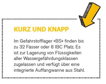 Ausgeliefert wird das Gefahrstofflager »BS« fertig montiert. Zusätzlich stehen bei allen organisatorischen Schritten (vom Antragsverfahren bis zur Inbetriebnahme) die Experten von Denios begleitend und unterstützend zur Seite. Die Fachberatung von Denios soll zudem die bestmögliche Produktauswahl für die kundenseitigen Anforderungen gewährleisten.