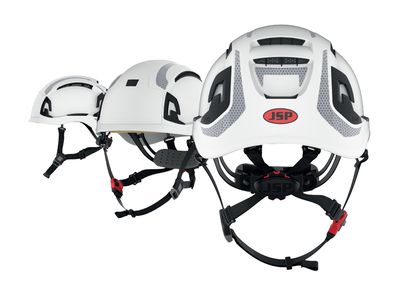 Für JSP Safety gingen »EVOLite« und »EVO VISTAlens Dual-switch« an den Start – zwei Modelle, die sich aufgrund des modularen Systems mit zahlreichen Features ausstatten lassen. Auf diese Weise möchte das Unternehmen ein möglichst breites Anwenderspektrum ansprechen. Zu den Zubehörteilen gehören beispielsweise Nackencapes, Helmausleuchtungen, verschiedene Schweißbänder, mehrere Kinnriemen mit und ohne Kinnschutz, Lampen- und Brillenhalter, LED-Lampen, großflächige Visiere, Schutzbrillen und Gehörschutzlösungen wie »Sonis«-Gehörschützer, die sich in den Helm integrieren lassen. Auf diese Weise, so der Hersteller, kann der Helm den individuellen Anforderungen des jeweiligen Arbeitsbereichs angepasst werden.
