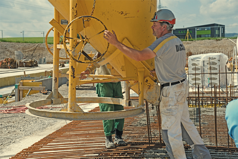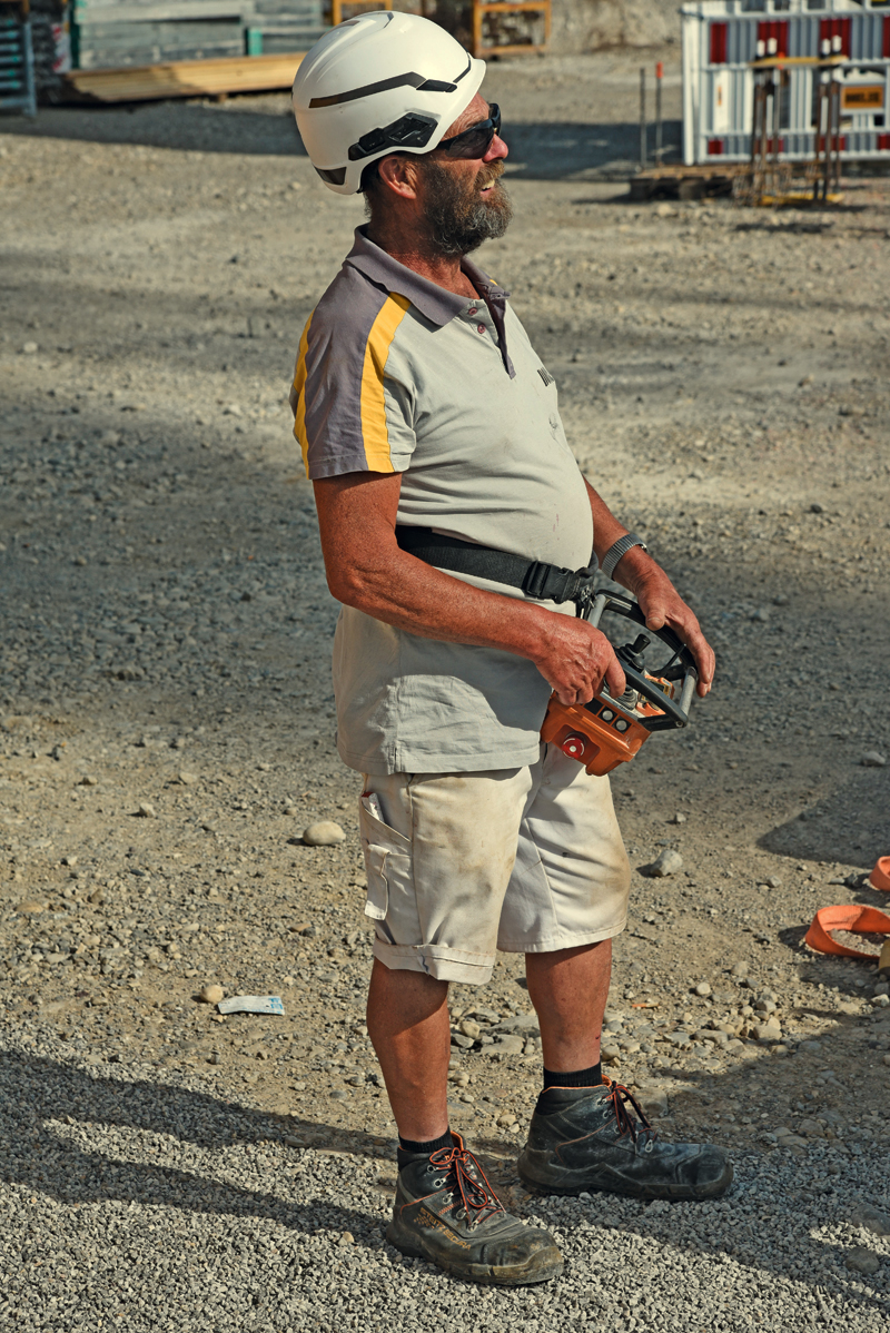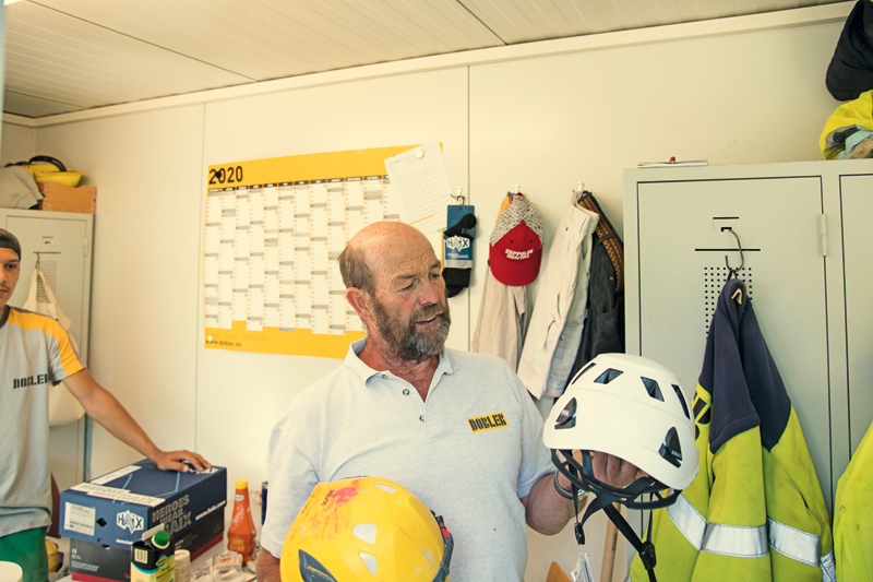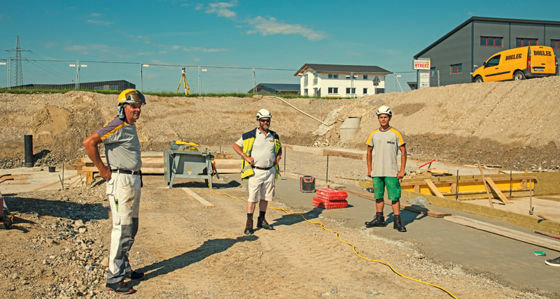 Zwischen Stahlstreben, Staub und sengender Hitze: Am großen Tag der Helm-Übergabe brannte die Sonne im Allgäu unerbittlich vom Himmel. Das Dobler-Team hatte uns bereits erwartet und war gespannt auf die Helme von JSP Safety, Petzl, Voss und MSA Safety. Jeder Hersteller hatte jeweils zwei verschiedene Ausführungen für das Helm-Projekt zur Verfügung gestellt – getestet wurden insgesamt acht Modelle für den Bereich Hoch- und Tiefbau. Die Probanden Alfons Eibeler (Kranfahrer, 60 Jahre), Jürgen Martin (Polier, 49 Jahre), Deniz Soyari (Facharbeiter, 19 Jahre) und Mario Gutsfeld (Facharbeiter, 40 Jahre) sind erfahrene Baufachleute, die ihre neuen Helme bereits beim Auspacken ausgiebig unter die Lupe nahmen. Und genau das ist es, was dieses Projekt letztlich so interessant macht: Natürlich müssen Kopfschutzlösungen zahlreichen Vorgaben und Richtlinien genügen. Doch neben der Erfüllung wichtiger Schutzkriterien sollen sie auch alltagstauglich sein.
