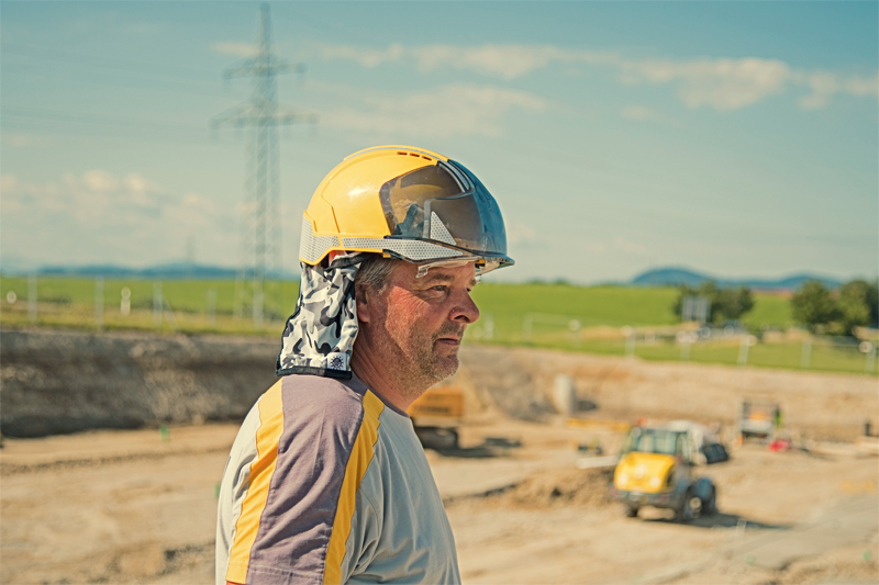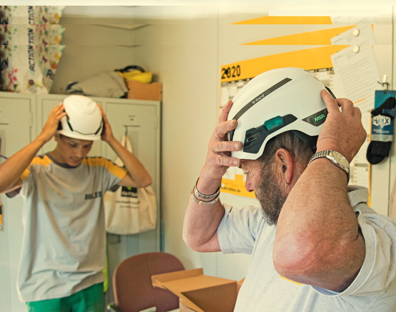 Ein großer Dank gilt in diesem Zusammenhang den Herstellern MSA Safety, Voss, Petzl und JSP Safety, die ihre neuesten Lösungen für dieses Projekt zur Verfügung gestellt haben. Als unabhängige Testgruppe diente ein eingespieltes Team der Firmengruppe Dobler, einem familiengeführten Bauunternehmen aus dem Allgäu, das bereits auf eine über 140-jährige Firmengeschichte zurückblickt und großen Wert auf professionelle Schutzausrüstung legt. In einem Zeitraum von acht Wochen hat das Dobler-Team acht verschiedene Helm-Modelle getragen und dabei alles bis ins kleinste Detail unter die Lupe genommen. Nach Abschluss des Projekts war eines nämlich mehr als offensichtlich: Ein Bauhelm muss mehr können, als »nur« zu schützen.