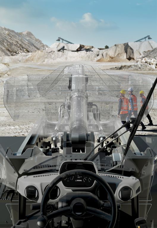 Die Schwachstelle jedes Radladers in puncto Sicherheit ist der Blick nach vorn, der durch die Position der Schaufel begrenzt ist. Den Develon-Ingenieuren ist es gelungen, den toten Winkel vor der Schaufel sichtbar zu machen und das Risiko eines Unfalls mit Personen oder Gegenständen deutlich zu reduzieren. Bereits 2021 wurde die branchenweit erste Frontprojektionsfunktion mit einer »transparenten Schaufel« auf den Markt gebracht. Damit der Fahrer sozusagen »durch die Schaufel hindurchsehen kann, zeichnen zwei oben und unten positionierte Frontkameras Bilder auf, die auf dem Monitor in der Kabine mittels einer gekrümmten Projektionsmethode als kombinierte Bilder in Echtzeit angezeigt werden. Die mehrfach ausgezeichnete Radlader-Lösung hat sich in den vergangenen drei Jahren im Einsatz bei Develon-Kunden weltweit bewährt. Mittlerweile ist ein Drittel der in Europa verkauften Radlader mit der transparenten Schaufel ausgerüstet.