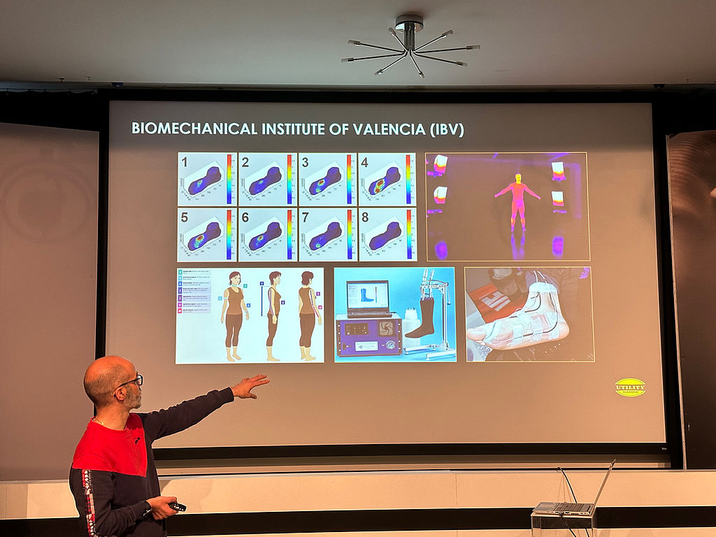 Michele Risatti, Research and Development Manager bei Diadora, erläuterte den Pressevertretern, welche Faktoren bei der Entwicklung von »Athena« berücksichtigt wurden. Das Unternehmen arbeitete eng mit dem IBV zusammen.