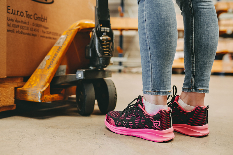 Neben klassischen Arbeitsschuhen in dunklen Farben bietet Eurotec auch farbenfrohe Modelle an. Die Sicherheitsschuhe »Style pink SBP« und »Style ocean SBP« fallen aufgrund ihres Aussehens direkt ins Auge. Ein grelles Pink sowie ein farbenfrohes Design in Orange und Blau bringen Abwechslung in die Schutzausrüstung. Bei beiden Modellen wird atmungsaktives Mesh-Gewebe als Obermaterial verwendet, welches auch nach mehreren Arbeitsstunden ein angenehmes Tragegefühl verspricht. Die beiden Modelle verfügen über eine Gummisohle, welche gleichzeitig Rutsch- und Stichfestigkeit bieten soll. Die Sicherheitsschuhe sind nach EN ISO 20345:2011 zertifiziert und weisen die Sicherheitsklasse SBP auf. Die Schuhe verfügen über eine Stahlkappe im Zehenbereich. So wird Schutz vor herabfallenden Gegenständen bis zu 200 Joule geboten. J