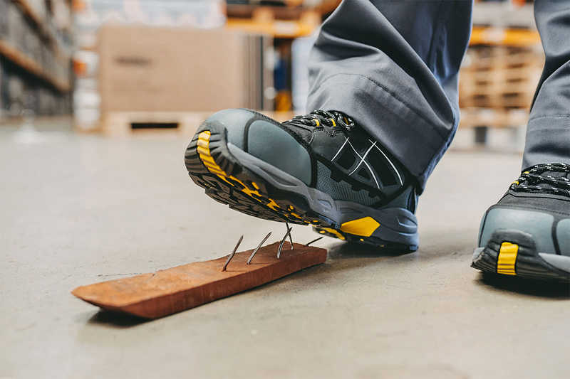 Mit einem Obermaterial aus Kunststoff und einer Außensohle aus Gummi gehören die Sicherheitsschuhe »Force low S1P« und »Force mid S1P« zu der robusten und strapazierfähigen Kategorie. Die beiden Modelle unterscheiden sich in ihrer Höhe: Es kann individuell zwischen Schuhen mit niedrigem oder halbhohem Schaft gewählt werden. Die Innensohle der Schuhe besteht aus Memory-Baumwolle und macht die Schuhe nach Angaben des Herstellers besonders atmungsaktiv. Mit einem Sicherheitsstandard nach EN ISO 20345:2011 S1P SRA zeichnen sie sich neben der Zehenschutzkappe im vorderen Bereich des Schuhs durch eine rutschhemmende, antistatische und ölresistente Sohle aus. Zur besseren Sichtbarkeit in dunklen Arbeitsbereichen sind die Sicherheitsschuhe mit Reflektoren an der Ferse ausgestattet.