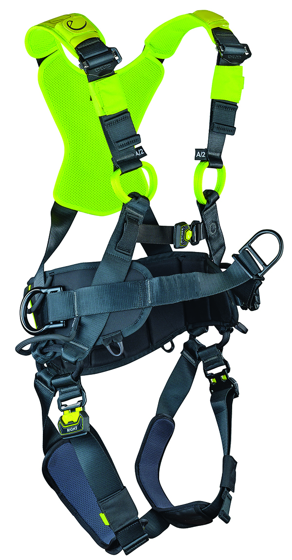 Die Gelenke der Gurte sind textil und machen somit, auch bei straff gezogenem Bändern, jede Bewegung mit. Dadurch liegt der Gurt flach am Körper, was beim Arbeiten im Gurt Druckstellen vermeidet. Durch die beiden »Easy Glider«-Schnallen im Brustgurt können die Bänder schnell und bequem angepasst werden. Abnehmbare »Strapkeeper« sorgen dafür, dass überstehende Bänder sicher verstaut werden können.