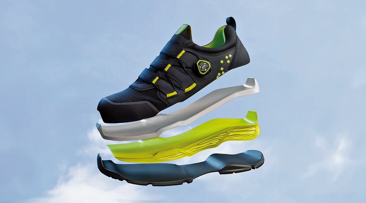 Eines der zentralen Elemente der neuen Kollektion ist die Sohle. Die oberste Schicht sorgt mit höherer Dichte für Stabilität zum Schutz von Rücken und Kniegelenken. Erhöhte Seitenbereiche verhindern ein Umknicken des Fußes. Der Mittelteil der Sohle besteht aus dem innovativen »Jalas ComSoft Air«-Material: Mikro-Luftblasen sorgen für Weichheit und ein Abfedern der Schritte. Zudem wird durch die spezielle Schnittführung der Zwischensohle die Dämpfung adaptiv angepasst. Auch in der untersten Schicht der Drei-in-eins-Sohle befinden sich Mikro-Luftblasen. Diese erzeugen einen »Saugnapf-Effekt« und gewährleisten eine hohe Rutschfestigkeit, auch auf rutschigen, nassen oder öligen Oberflächen. Das Profil (RS-Form) der strapazierfähigen Außensohle ist konisch, sodass Schmutz und Verunreinigungen einfach abfallen. Für ein weiteres Plus an Komfort sorgt die neue »FX3 Soft«- Einlegesohle. Die zwei eingearbeiteten Zonen aus dem Hightech-Material »Poron XRD« wirken besonders stoßdämpfend, indem sie 90 Prozent der Aufprallenergie absorbieren, wie Ejendals erläutert. Darüber hinaus verbessert die »C2 Climate Control«-Funktion der Einlegesohle mithilfe von Belüftungslöchern und -kanälen das Klima im Schuhinneren. Auch das geringe Gesamtgewicht und die auf die Ergonomie ausgerichtete Gestaltung des Schuhs sorgen für einen hohen Tragekomfort.