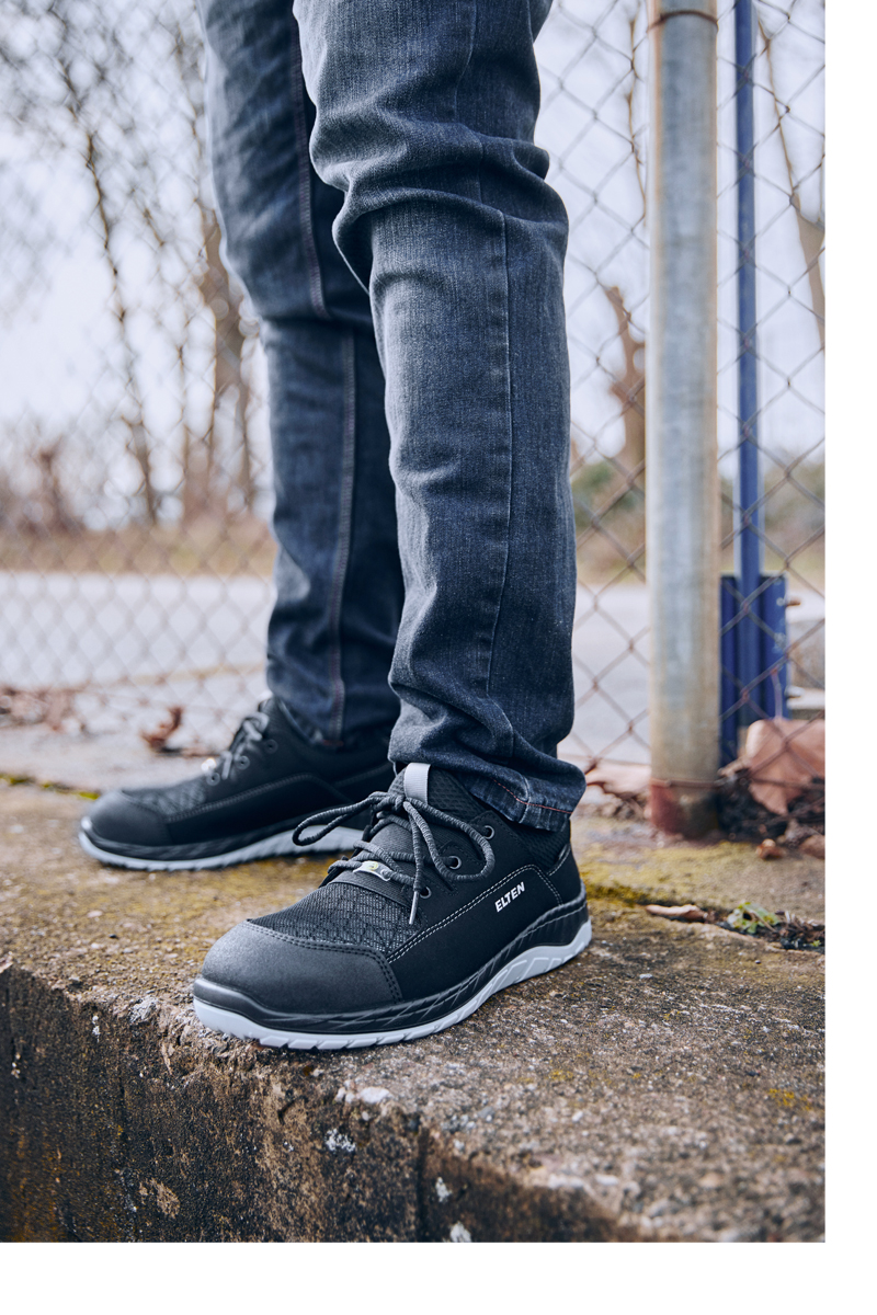Ein Highlight im erweiterten »Wellmaxx«-Sortiment sollen Schuhe mit der Sommer-Membran »Gore-Tex Extended Comfort« sein. Damit sind laut Elten schwitzige Füße bei der Arbeit passé. Die Schuhe sind nicht isoliert – für besseren Wärmeausgleich. Sie eignen sich besonders bei warmen Temperaturen und viel Bewegung sowohl im Innen- als auch Außenbereich. Auch der »Leland GTX grey Low ESD S3« verfügt über die Membran und über eine zusätzliche Gore-Tex Stretch Technologie: Sie verhindert die Faltenbildung im Ristbereich. Diese neue patentierte Konstruktion kombiniert flexible Gore-Tex Laminate mit elastischen Futtertextilien. Die glatte und biegsame Innenfläche erleichtert das Anziehen, Träger können ganz einfach in ihren Sicherheitsschuh schlüpfen. J