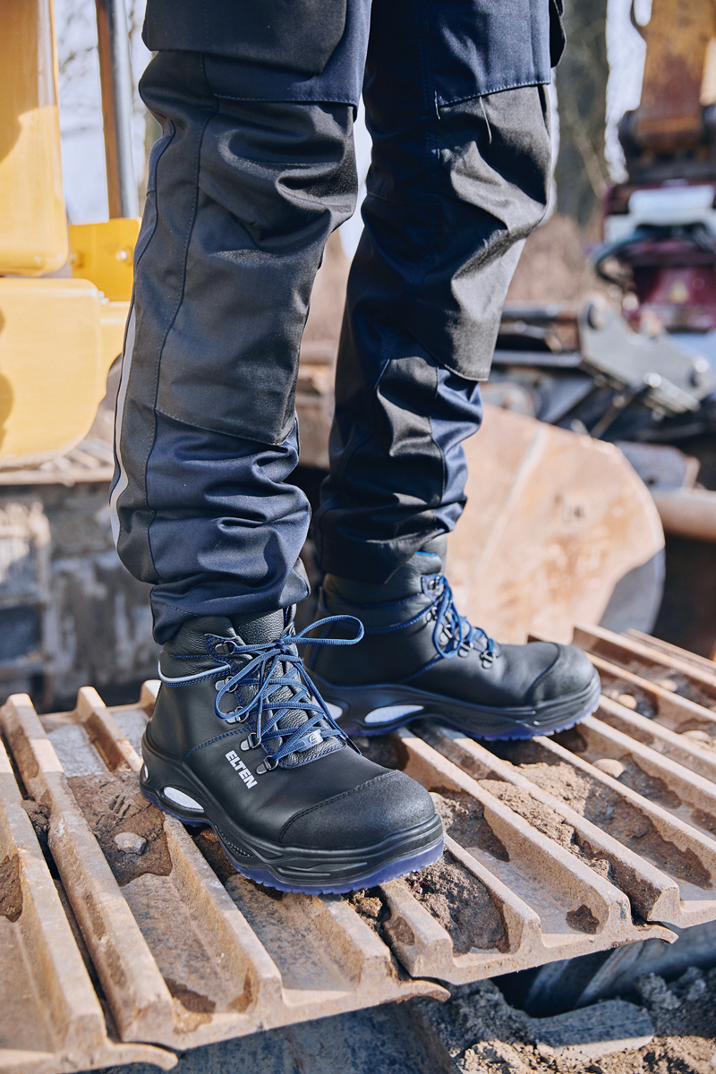 Von dem Fußschutz mit revolutionärer Sohlentechnologie profitieren aber nicht nur weibliche Beschäftigte. Auf für Männer bietet Elten eine vielfältige Auswahl passender Modelle für Jobs im Hoch-, Tief-, Straßen- oder Garten und Landschaftsbau. Mit einem Sohlen-kern aus Infinergy ist etwa der »Milton Mid ESD S3« ausgestattet, der überdies über seitlich angebrachte Reflexmaterialien verfügt. Das erhöht die Sicherheit von Beschäftigten – beispielsweise bei Regen, im Schatten, in der Dämmerung und in der Dunkelheit. Denn in solchen Fällen werden Menschen erst auf eine Entfernung von 30 m bemerkt. Das ist ein großes Risiko, wenn etwa Mitarbeiter im Straßenbau in unmittelbarer Nähe zur Fahrbahn arbeiten. Sicherheitsschuhe mit reflektierenden Materialien tragen dazu bei, dass ihre Träger auch bei widrigen Wetter- und Lichterverhältnissen zuverlässig geschützt und gleichzeitig gut sichtbar sind. J