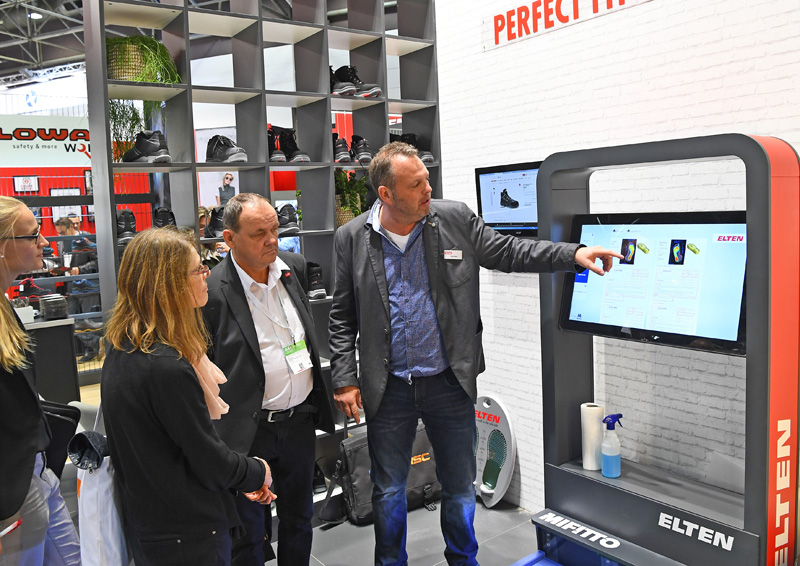 Die Form des Fußes, die höchst individuell ist, lässt sich mit dem System, das in Zusammenarbeit mit dem Fraunhofer-Institut für Integrierte Schaltungen ISS entwickelt wurde, exakt bestimmen. »Mifitto« ist mit einer Datenbank verknüpft, in der das vollständige Produktportfolio von Elten hinterlegt ist. Das System kann aber auch Schuhe für den Sport- und Freizeitbereich empfehlen, denn die Daten von »Runners Point«-Schuhen oder Marken wie »Lloyd« sind ebenfalls hinterlegt.Auf Basis der erfassten Daten erhält der Betroffene unmittelbar eine Empfehlung für Sicherheitsschuhe, die für seine Fußform am besten geeignet sind. Ist darüber hinaus die Verwendung von Einlagen notwendig, werden auch dafür geeignete Lösungen angezeigt. Die Technologie von »Mifitto« wurde in Zusammenarbeit mit dem Fraunhofer-Institut für Integrierte Schaltungen ISS entwickelt. Dass auch Schuh-Lösungen für Problem- und Diabetikerfüße nicht mit »Orthopädie-Optik« daherkommen müssen, konnten die zahlreichen Besucher am Messestand ebenfalls erfahren. Gezeigt wurden Modelle wie »Biomex 4.0« oder »Dialution« (die bauSICHERHEIT berichtete in Heft 10/17, Seite 6). jr