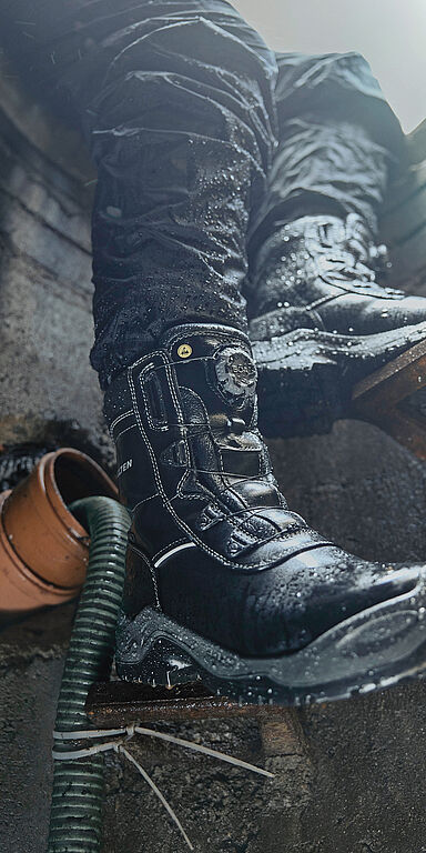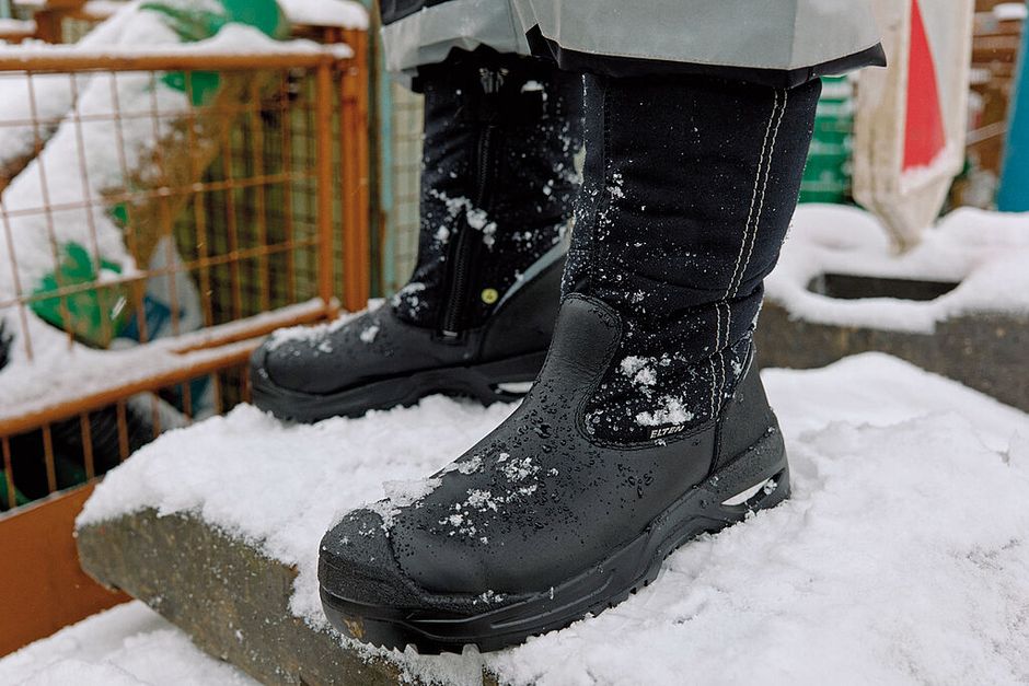 Wenn die Temperaturen unter den Nullpunkt fallen, eignen sich darüber hinaus Sicherheitswinterstiefel wie der »Joschi Boa GTX ESD S3 CI« Er ist mit einer Gore-Tex Wintermembran namens »Insulated Comfort Wear« ausgestattet. Diese sorgt im Zusammenspiel mit dem Obermaterial aus Rindsleder für eine optimale Wärmeisolierung. Eine grobstollige PU/PU-Sohle gewährleistet außerdem hohe Tritt- und Standsicherheit auch auf unebenen Untergründen. Zudem ist der Stiefel mit dem praktischen und zeitsparenden Drehverschluss »Boa Fit« ausgestattet. Damit lässt sich der Sicherheitsstiefel im Handumdrehen öffnen und wieder schließen.