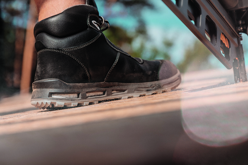 Insbesondere die Füße geraten auf den rutschigen Böden in Gefahr – hier ist Fußschutz gefragt, der sicheren Halt verspricht. Genauso wichtig ist eine optimale Dämpfung, denn dauerhaftes Gehen, Stehen oder Hocken auf der Baustelle beanspruchen die Füße und den gesamten Bewegungsapparat. Sicherheitsschuhhersteller Elten entwickelt Lösungen, die diese Anforderungen vereinen.