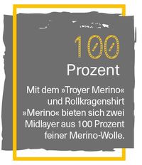 Mit dem »Troyer Merino« und Rollkragenshirt »Merino« sollen hingegen gleich zwei neue Midlayer aus 100 Prozent feiner Merino-Wolle für eine Extra-Schicht Wärme und Komfort sorgen. Und das kombiniert mit Workwear-Funktion: Die beiden sportlichen Modelle verfügen einerseits über eine gute Körperklima- und Feuchtigkeitsregulation und andererseits über bequeme Elastizität. Die weiche und leichte Wollfaser hemmt die Geruchsbildung und verleiht selbst an bewegten Arbeitstagen ein gutes Gefühl. Das Rollkragenshirt »Merino e.s.trail«, so Engelbert Strauss, werde »zum ultimativen Begleiter für alle, die viel outdoor oder in kühlen Werkhallen unterwegs sind.« Der breite Rollkragen schützt vor kalter Zugluft und hält die empfindliche Halspartie angenehm warm.