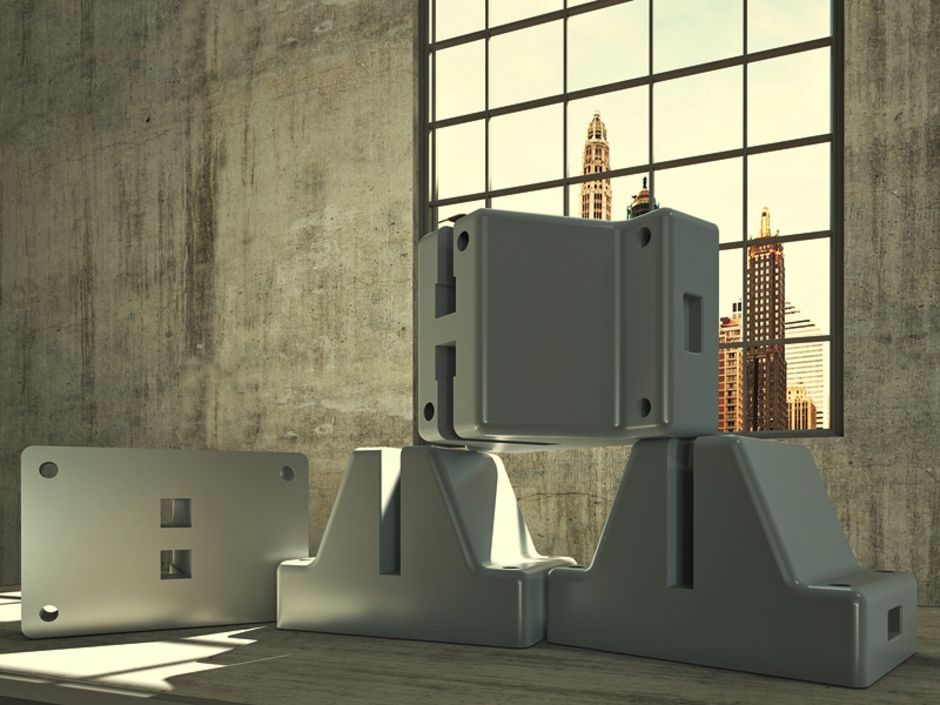Das geringe (Leer-)Gewicht spart zudem Transportkosten und schont die Aufbauenden durch körperliche Entlastung. Auch gegenüber dem hohen Verschleiß der Betonfüße kann der »Fencefoot« durch dessen beständige und belastbare Kunststoffbauweise punkten und so auch dem Nachhaltigkeitsgedanken nachgehen. All dies führt aus Sicht des Herstellers letztlich aber vor allem zu einem wesentlichen Effizienzgewinn für die Kunden, da weniger Fußelemente benötigt werden als beim bisherigen Aufbau. 4 – 5 Füße, die bisher benötigt wurden, um für ausreichend Gewicht (und damit Standfestigkeit) zu sorgen, können laut Unternehmen nun durch einen einzigen »Fencefoot« ersetzt werden. J
