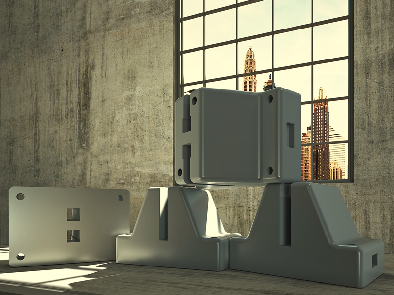 Auf Basis der gemachten Erfahrungen wurden die Schwachstellen der bisherigen Füße analysiert, und durch Verbesserungsansätze in einer gänzlich neuen Konstruktionsform zusammengetragen. So wurde letztlich ein komplett neuartiger Bauzaunfuß zur Sicherung der Baustellen, Straßen und Veranstaltungen entwickelt. Von Beginn an liegt der Fokus des Projekts darauf, eine sicherere Lösung zu schaffen. Die überdachte Funktionsweise der Fußelemente und die daraus resultierende Standfestigkeit der Zäune sorgen in Zukunft für sichere Bedingungen bei jeder Wetterlast.