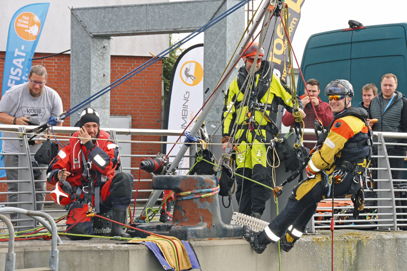 Überhaupt war die Stimmung rund um den Veranstaltungsort gut und aus Sicht des Veranstalters zudem sehr vertraut. Man kenne sich in der Branche und für die meisten Teilnehmer sei es nicht der erste Besuch auf einem Fisat-Technikseminar. »Das Seminar gehört für uns zu den wichtigsten Veranstaltungen im Jahr, es ist einfach ein super Ort, um alle auf einem Haufen zu treffen. Ein idealer Ort, um zu netzwerken und seine Produkte vorzustellen«, sagte Ronja Brinkmann vom Ausrüster Petzl. Sascha Förster, Inhaber von Höhentechnik Förster Safetysolutions, ergänzte: »Es ist hier wirklich total familiär. Der Umgang ist sehr respektvoll, der Fisat gibt sich viel Mühe, immer super Locations zu finden und für eine schöne Atmosphäre zu sorgen.« Die gab es auch am Abend des ersten Seminartages in geselliger Atmosphäre, während eines kleinen Schiffstörns durch das Bremer Hafengebiet.